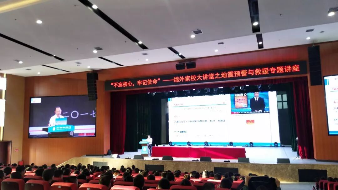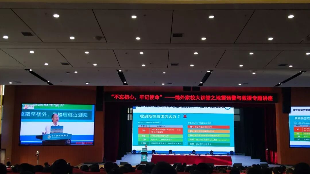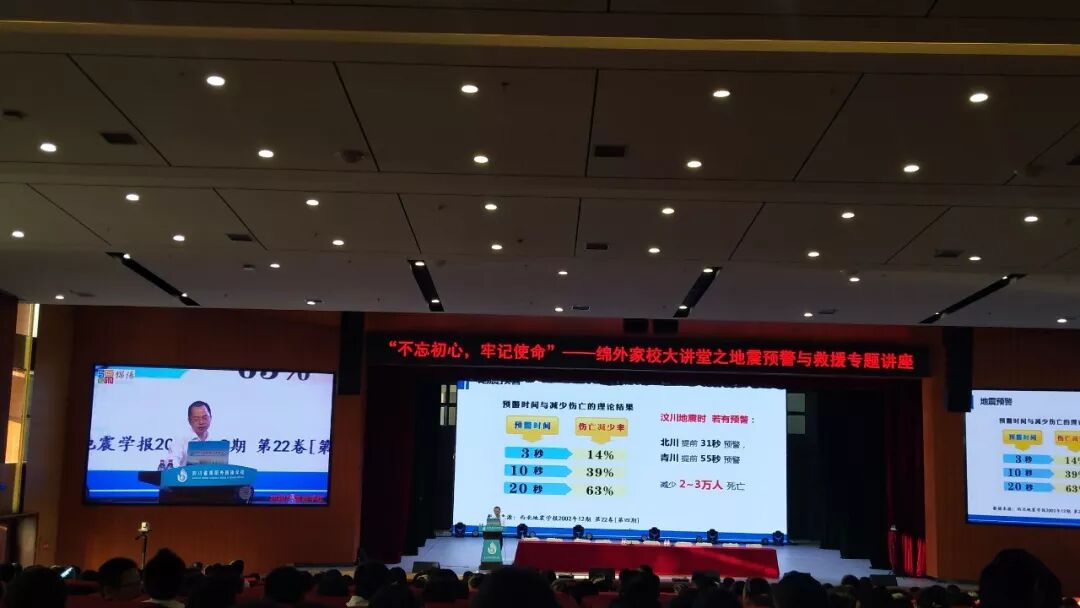 绵阳外国语学校为深入践行“不忘初心、牢记使命”主题教育精神,不断增强学校师生的安全意识,提升地震自救能力,将校园安全工作落到实处,经校党委研究决定,10月11日“家校大讲堂”邀请王暾博士到绵外为师生做“地震预警与救援”专题讲座,王暾博士在百忙之中欣然应允,走进“伴山大礼堂”为绵外师生带来了一场既着眼宏观又关注微观的智慧盛宴。