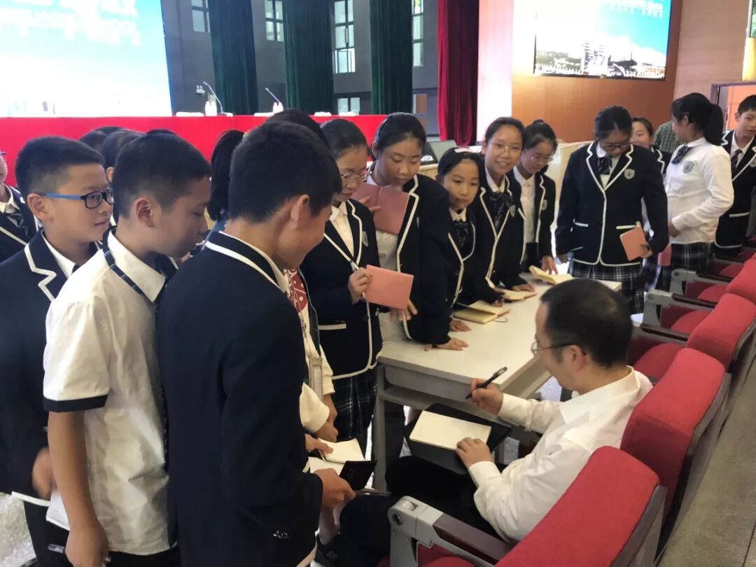 意犹未尽的学生排队纷纷向王暾博士索要签名