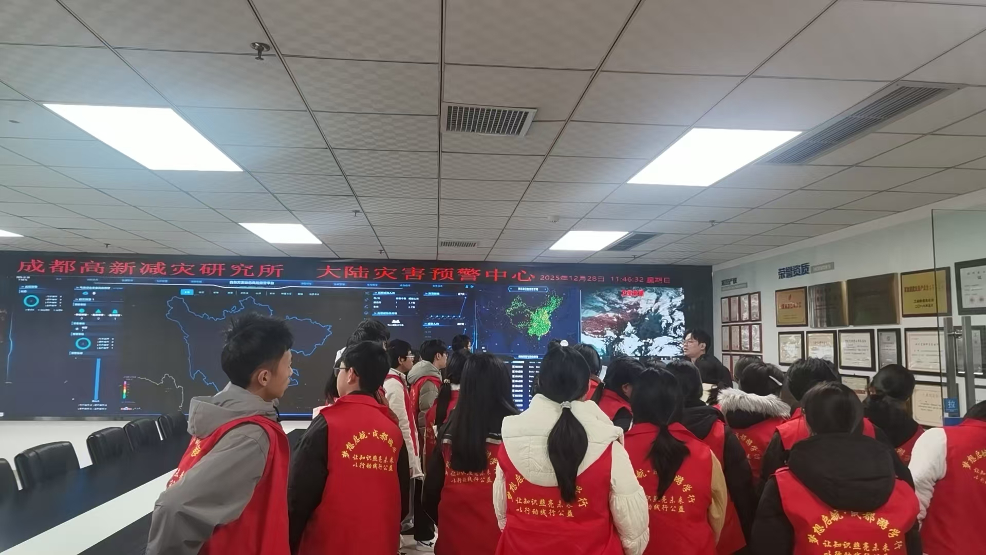 12月28日,四川省达州市大竹县多所中小学的学生代表来到成都高新减灾研究所(以下简称“减灾所”),在沉浸式科普实践中,走近来自大竹家乡的科学工作者王暾博士的创业故事,并上了一堂生动的防灾减灾科普课。